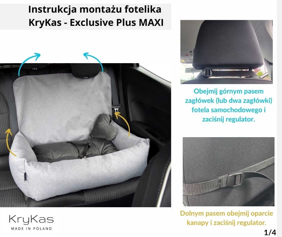 Duży fotelik dla psa do auta Exclusive Plus Maxi – sposoby montażu