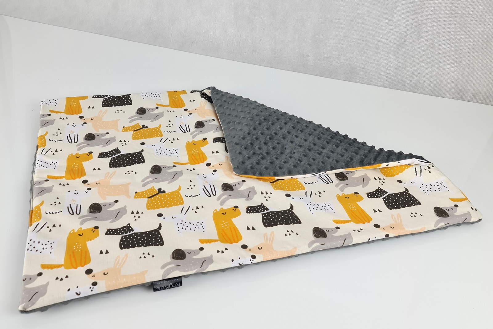 DWUSTRONNY kocyk/mata Minky & bawełna – Dumne Pieski 70x50cm
